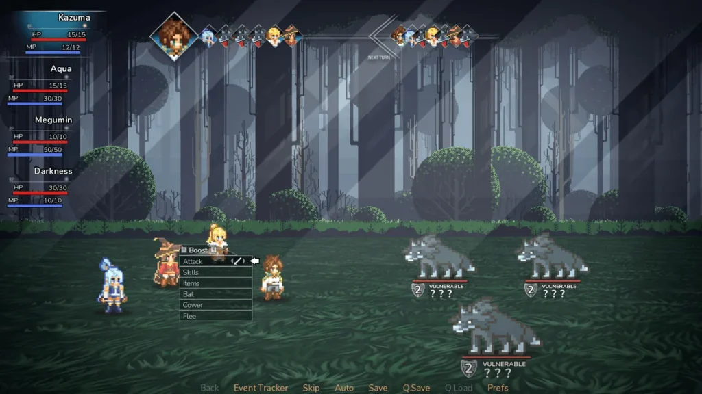 * Engage in turn-based, JRPG-style combat against iconic Konosuba monsters (and some original ones!).