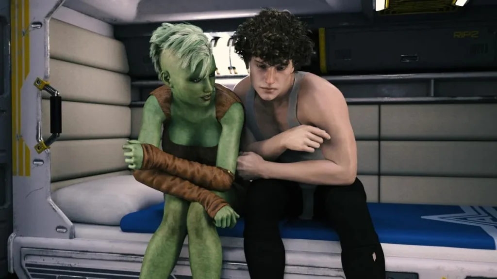 Furthermore, the animations are seamlessly integrated, particularly during key narrative and intimate moments. A gentle touch, a charged glance, a dynamic action sequence—these aren’t static images. They flow with a naturalism that pulls you deeper into the scene, making the emotional and physical connections between characters feel tangible and earned. The attention to detail in characters’ job-appropriate outfits and personal style (like Thyia’s practical, oil-smudged gear versus a science officer’s crisp uniform) further grounds the story in a believable sci-fi reality.